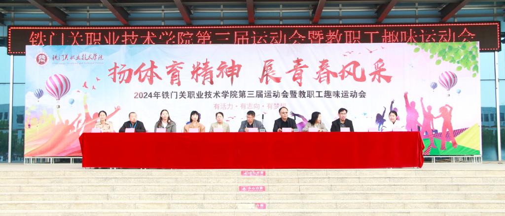 10月16日,beat365官方网站第三届运动会暨教职工趣味运动会开幕式在燕赵楼前广场举行,学院领导、各二级分院负责人出席开幕式。