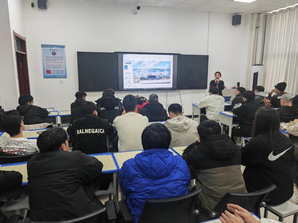 宣讲会在机械电气工程学院多媒体教室举行,天域航通科技有限公司的招聘负责人详细介绍了公司的发展历程、企业文化、业务领域以及未来发展方向。该公司成立于2017年11月,致力于全国产化大型无人机、载人通航飞机的研制,是一家集研发、生产、销售、市场运营、服务保障为一体的高科技创新型通航企业。宣讲中,招聘负责人重点强调了公司在无人机领域的领先地位,以及公司在人才培养、福利待遇、职业晋升等方面的优势。