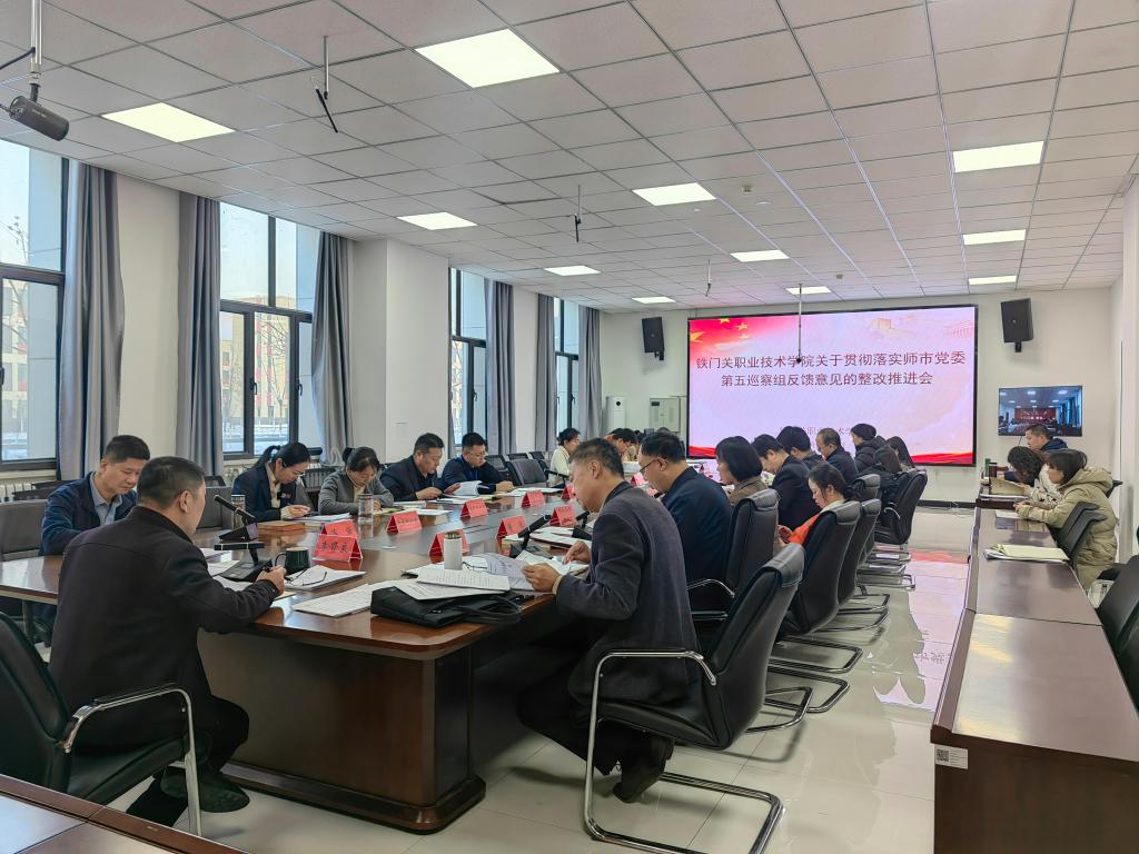 为切实贯彻落实师市党委第五轮巡察组巡察整改工作部署,推进巡察反馈问题彻底整改,12月11日下午,beat365官方网站召开师市党委第五轮巡察组反馈意见整改推进会。学院领导、整改工作组成员、相关部门主要负责人参加会议。