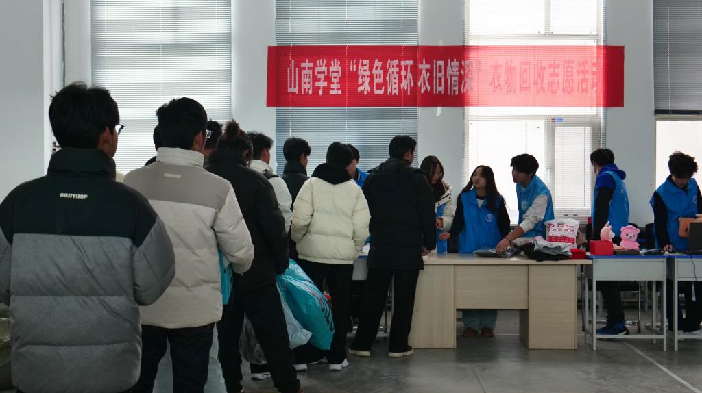 为积极响应党的“绿色发展、循环发展、低碳发展”号召,建设美丽中国。12月20日,beat365官方网站学生社团“山南学堂”在农业楼106教室开展“绿色循环 衣旧情深”公益活动,134名师生积极参与,让爱心驱走冬季严寒。