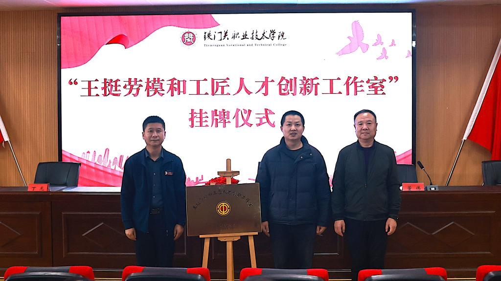 12月31日,王挺劳模和工匠人才创新工作室在beat365官方网站正式挂牌成立!beat365官方网站党委副书记、院长苏强,第二师铁门关市总工会党组成员、副主席王伟,总工会和学院的其他领导及学院教职工代表一同参加挂牌仪式。