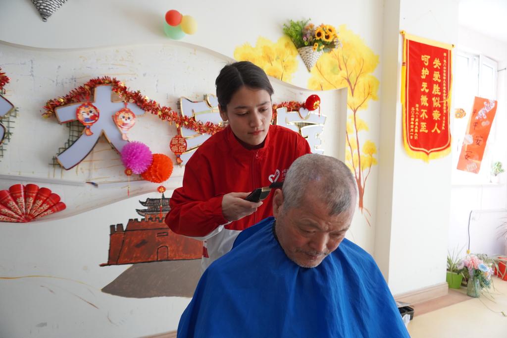 活动现场,志愿者们精心编排适老化服务项目。文艺演出环节选取《北京的金山上》《南泥湾》等经典曲目引发老人情感共鸣,手指健康操教学促进老年群体肢体协调;生活服务组开展居室清洁、义务理发等专项帮扶,关怀组通过陪伴聊天、心理疏导等方式了解老人生活需求。活动特别设置"温情记忆"环节,为老人赠送慰问物资及手写祝福卡片,并现场打印活动合影赠予老人以作留念。