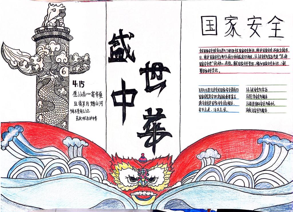 4月15日,学院组织全体师生观看国家安全主题教育片,围绕国家安全内涵与重要性展开讨论,强化维护国家安全的责任感和使命感。同时,动员学生积极参与国家安全主题手抄报创作,以绘画形式表达对国家安全的理解;各班级召开主题班会,班主任通过案例分析、小组讨论等形式,引导学生树立正确国家安全观。