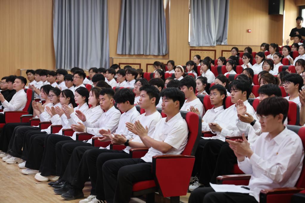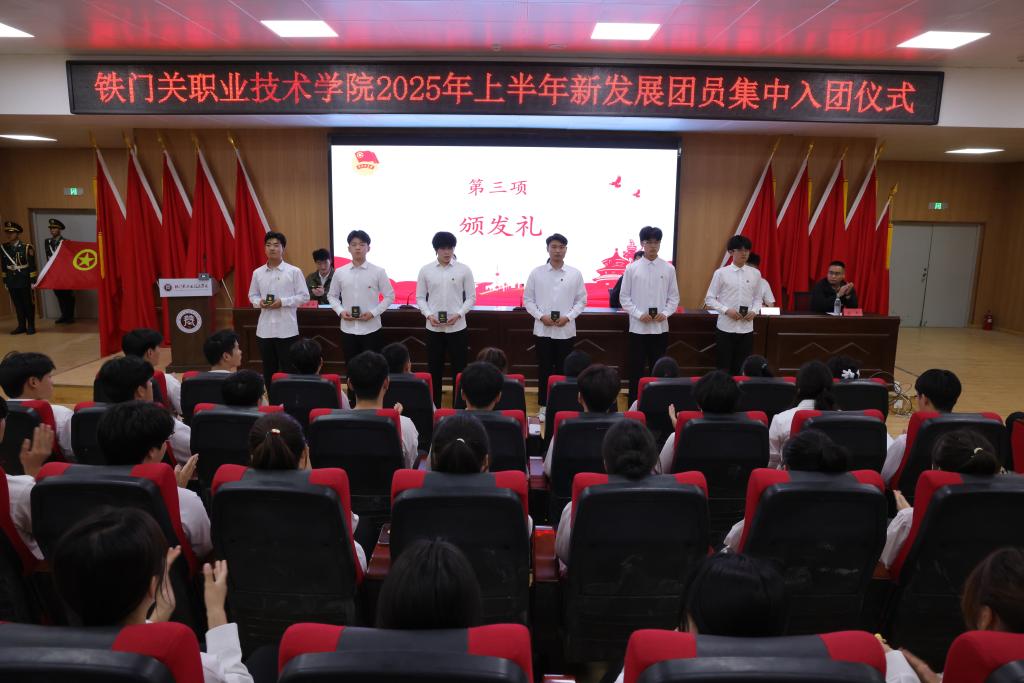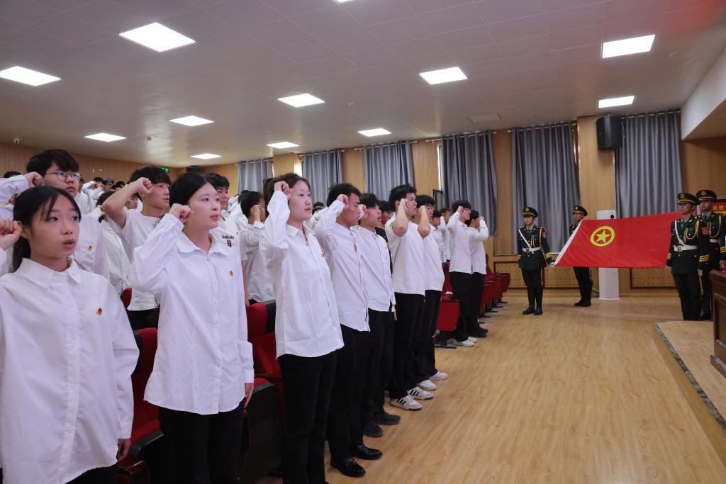 仪式在国歌声中拉开帷幕。学院党委委员、副院长董伟宣读新发展团员名单,与会领导分批次为新团员代表佩戴团徽、颁发团员证。全体新团员在学院团委副书记带领下庄严宣誓,铿锵誓言展现新时代青年听党话、跟党走的坚定信念。
