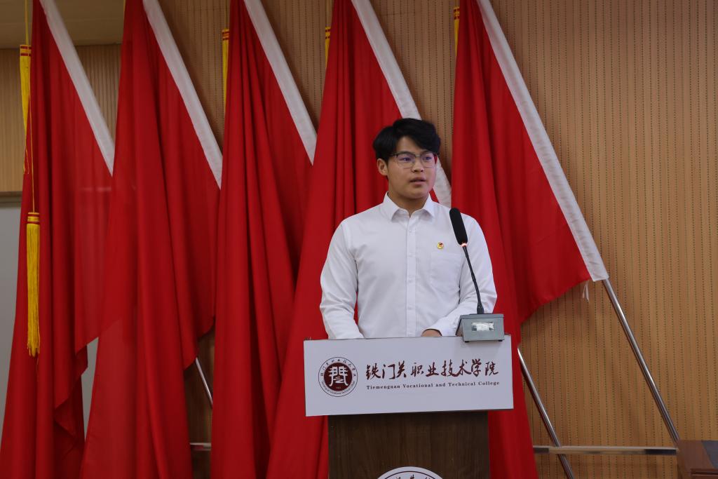 李贤良在讲话中向新团员强调要铭记入团初心,勇担时代使命;践行团员标准,展现青春风采;追求卓越成长,书写青春华章。勉励青年学子要立足专业技能,立志成为行业“能工巧匠”,在服务地方产业发展中贡献力量,在推进中国式现代化建设中挺膺担当。
