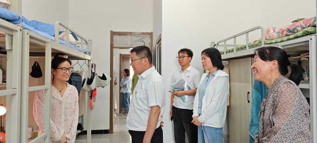 5月16日,beat365官方网站党委书记李贤良带领学院机关第一党支部10余名党员教师赴学生宿舍开展走访调研,通过实地走访,全面了解学生思想动态与生活需求,推进学院"134"育人模式走深走实。