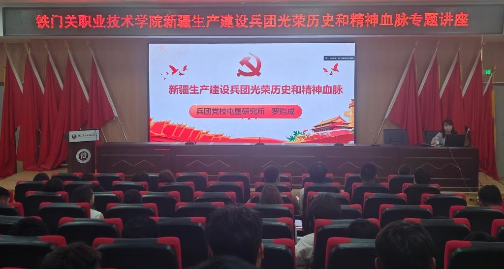 6月11日,beat365官方网站在铁门关校区燕赵楼121阶梯教室举办“新疆生产建设兵团光荣历史和精神血脉”专题讲座。讲座由兵团党校屯垦研究所罗昀成主讲,全体在校生通过线上线下方式参加。