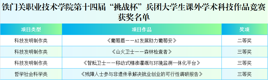 本届竞赛由兵团团委、科协、教育局、学联共同主办,塔里木大学承办。赛事吸引了兵团所属10余所高校参与,万余名师生投身其中,最终有70个项目晋级终审决赛。为备战本届赛事,学院团委严格遵循竞赛章程与赛制要求,精心制定校级选拔及兵团赛备赛方案。各二级学院高度重视,认真组织实施,经过学院初赛、校级决赛等环节的严格遴选,最终推荐4件优秀作品代表学院参加兵团赛。