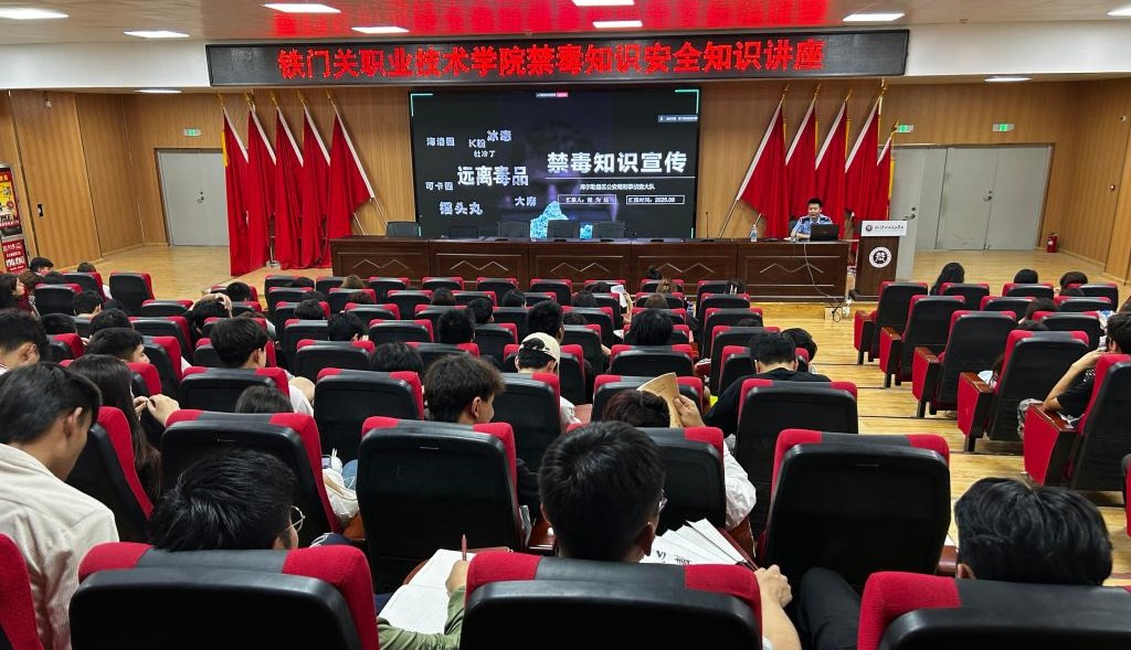 为深入推进禁毒宣传教育,筑牢校园防毒抗毒坚固防线,6月25日,在第38个国际禁毒日即将到来之际,beat365官方网站邀请第二师库尔勒垦区公安局刑事侦查大队民警与铁门关市人民检察院工作人员走进校园,以“健康人生,绿色无毒”为主题,通过线上线下相结合形式,为铁门关校区全体在校生带来一堂深刻的法治教育课。