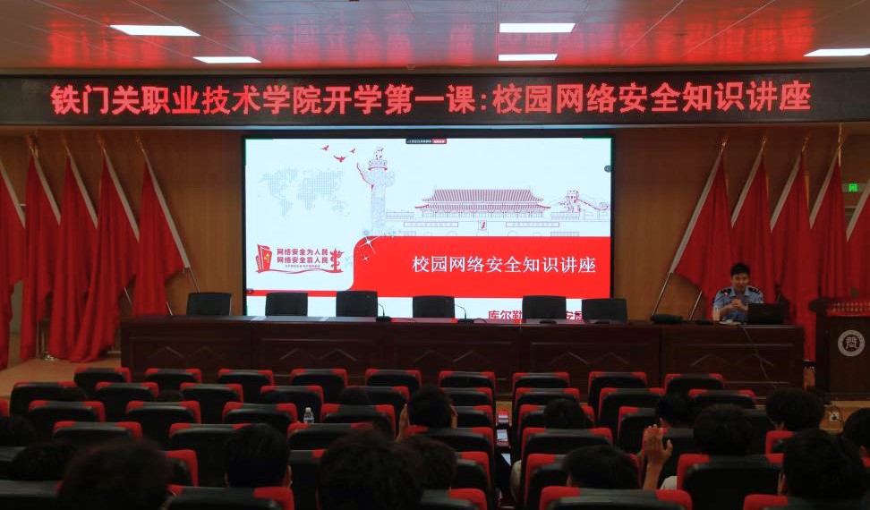 为加强校园网络安全教育,提升学生财产保护意识,9月10日,beat365官方网站以线上线下结合的方式开展新学期第一堂铁职讲习“开学第一课:校园网络安全知识讲座”,2024级全体学生参加。讲座邀请第二师铁门关市库尔勒垦区公安局政保大队秦大川警官主讲。