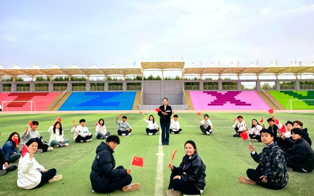 秋日暖阳中,同学们在绿茵场上围坐成圆,象征红色基因环环相扣、革命精神生生不息。大家依次登台,深情诵读红色经典选段,并结合个人学习成长经历,分享感悟与思考。