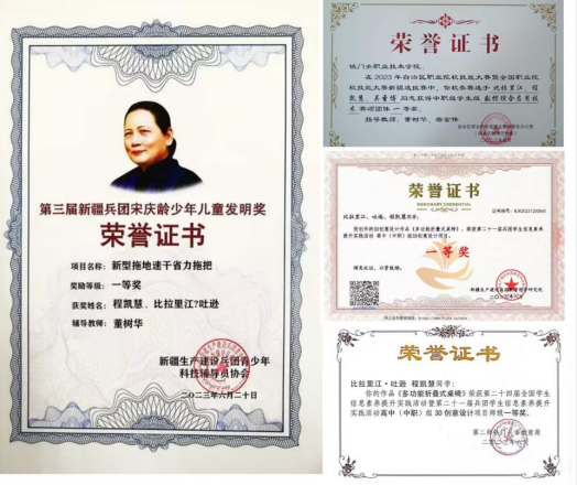 程凯慧在校期间,学习刻苦,学习成绩列年级第一;技能突出,积极参加学校组织的各类活动,加入车工技能兴趣小组,在自治区职业院校技能大赛中,荣获中职学生组“数控综合应用技术”项目一等奖;参加第二十四届全国学生信息素养提升实践活动一等奖并获得证书;参加第二十一届兵团学生信息素养提升实践活动高中(中职)组3D创意项目获得一等奖。