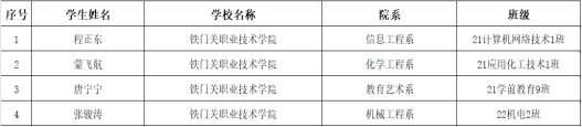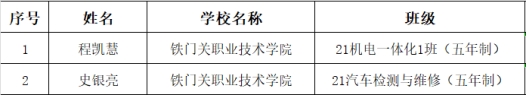 根据教育部发布的《关于2022—2023学年度本专科生国家奖学金获奖学生名单的公告》,教育部、人力资源和社会保障部联合发布的《关于2022—2023学年度中等职业教育国家奖学金获奖学生名单的公告》,学院程正东、蒙飞航、唐宁宁、张骏涛、程凯慧、史银亮6名学生榜上有名,获得2022—2023学年度国家奖学金。