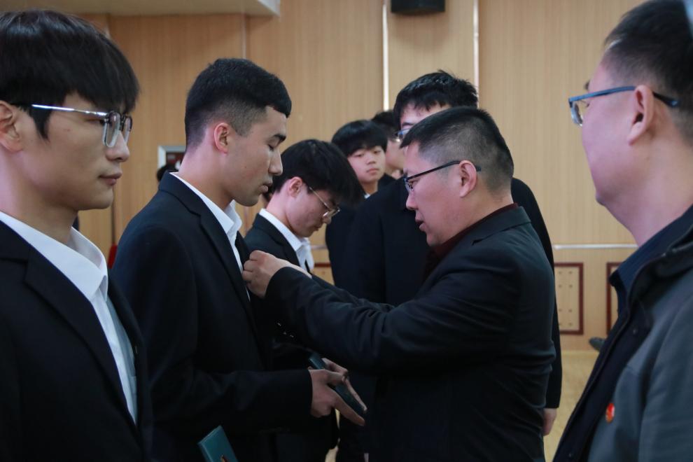 仪式在庄严的国歌声中拉开序幕,首先,学院团委书记宣读郭婷芳、杨新芳、热娜古丽•艾的等201名新入团员名单。随后,与会领导为新入团员代表佩戴团徽并颁发团员证,象征着同学们身份的转变,赋予同学们新的使命与责任。
