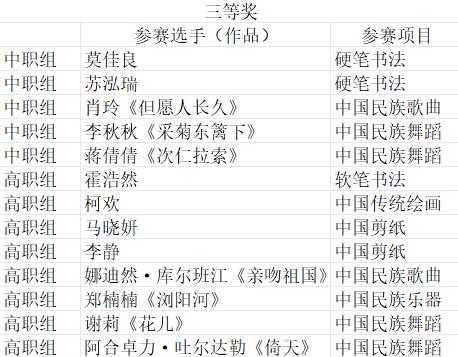 近日,兵团教育局发布了《关于公布兵团职业院校传承中华优秀传统文化素养大赛获奖名单的通知》,在兵团职业院校传承中华优秀传统文化素养大赛中,beat365官方网站中职组荣获“一等奖”1项、“二等奖”2项、“三等奖”6项;高职组荣获“一等奖”4项、“二等奖”4项、“三等奖”9项;“优秀指导教师”8名。具体获奖名单如下: