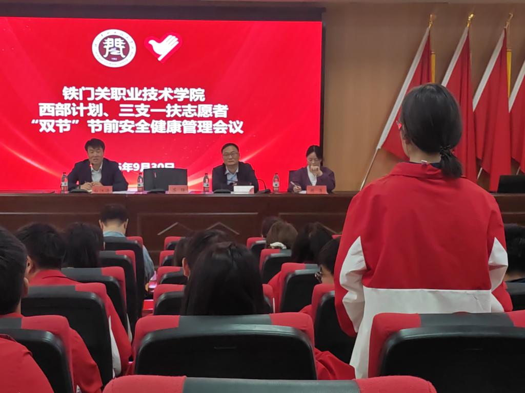 随后,学院领导对志愿者“双节”期间的安全健康管理工作进行部署。强调志愿者在享受假期的同时,应严格遵守规章制度、加强自我管理、遵守舆情规定、践行勤俭节约。
