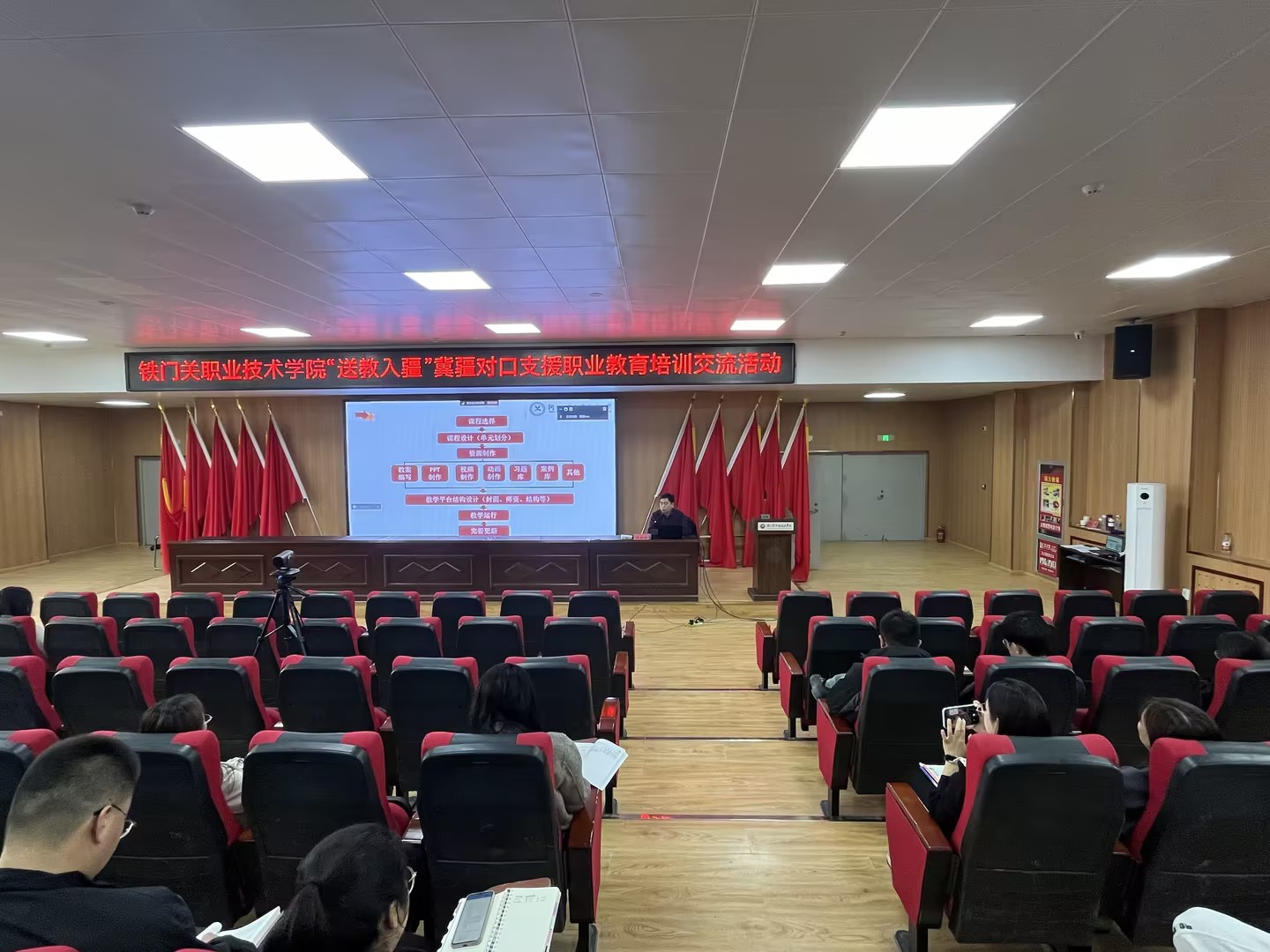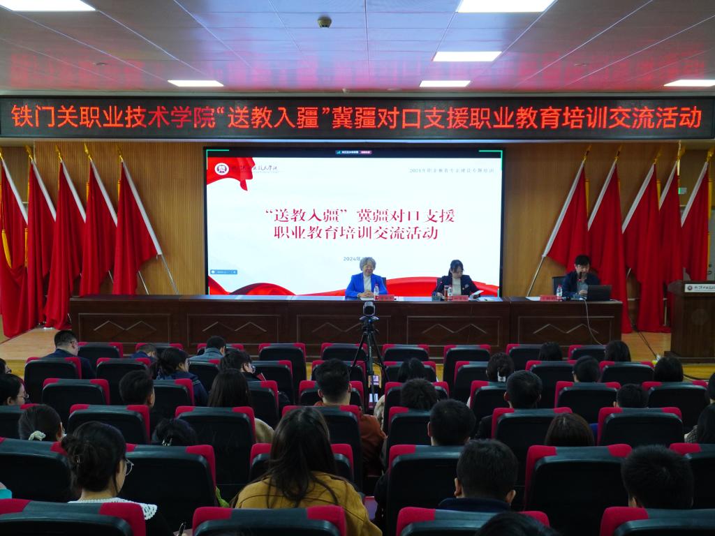 为充分发挥河北省优质教育资源的引领、带动、辐射作用,共享教育智慧,形成教育合力,10月23至24日,河北省教育专家“送教入疆”对口支援职业教育培训交流活动在beat365官方网站举行,学院铁门关校区及中职部共计100余名教师参加培训,兵团兴新职业技术学院、巴音郭楞职业技术学院、塔里木职业技术学院、巴州红旗高级技工学校等兄弟院校教师线上参加培训。