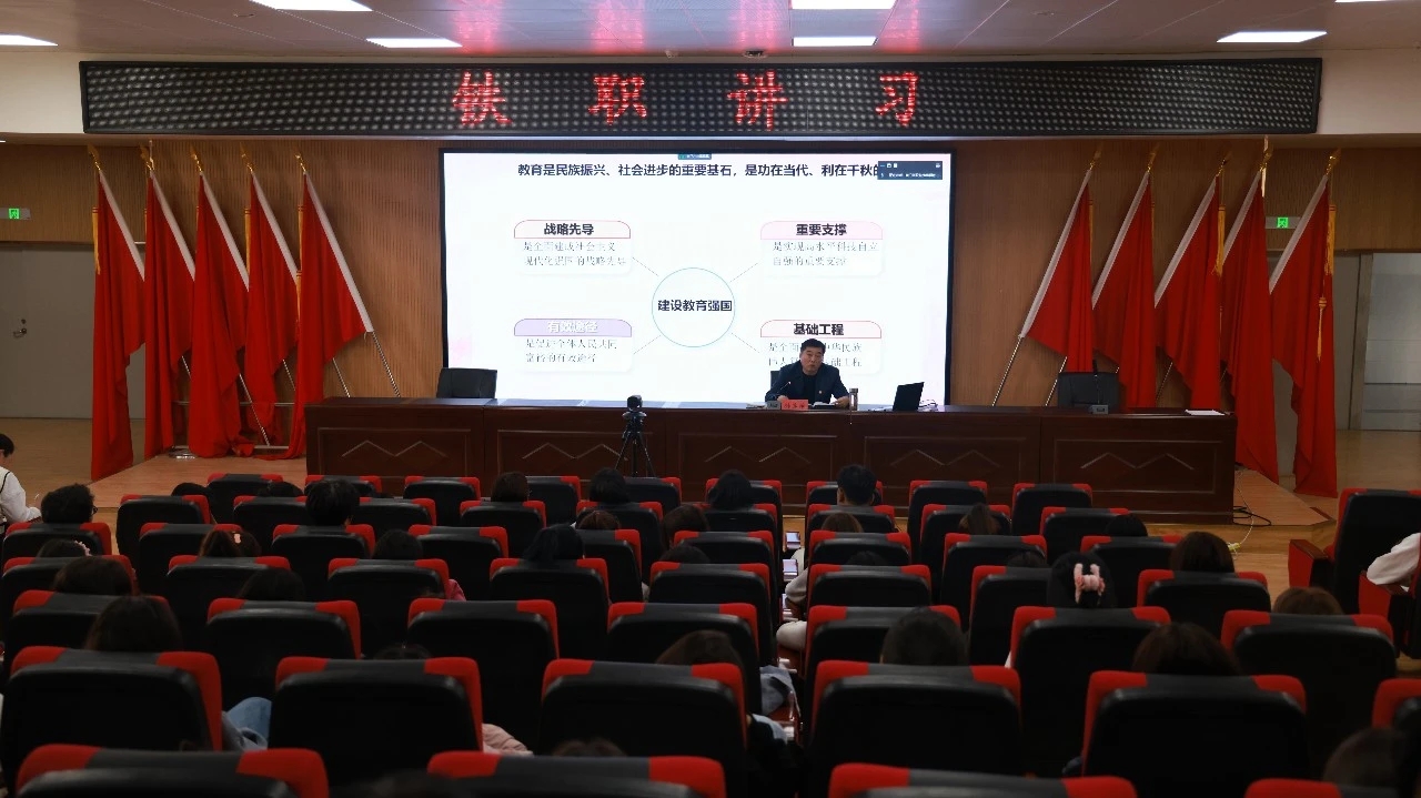 10月25日,beat365官方网站党委书记孙苏维在“铁职讲习”思政大讲堂上,以“加快建设教育强国、人才强国、科技强国”为题采用线上线下相结合的方式为全体师生授课。