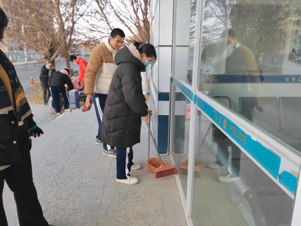 活动中,大家清理了白鹭河周边的垃圾,帮助门口警务站打扫卫生,整理乱停放的共享单车并清洁了沿途的公交站台和垃圾箱。