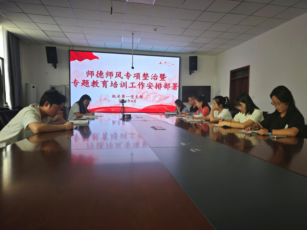 会议伊始,由机关第一党支部书记传达学习兵团党委、师市党委和学院党委关于开展党纪学习教育、师德师风专项整治暨专题教育培训工作的部署安排。