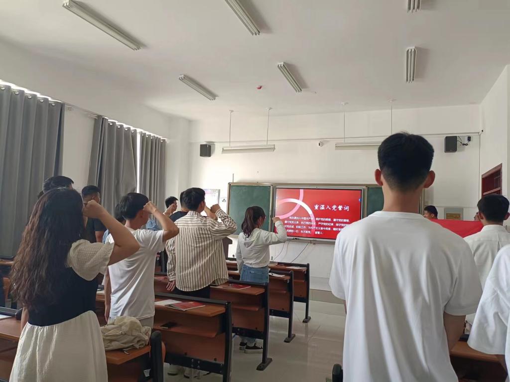 理论学习后,全体党员重温入党誓词,加深对党的性质、宗旨的认识,坚定理想信念,增强为党的事业奋斗终身的信念和决心。