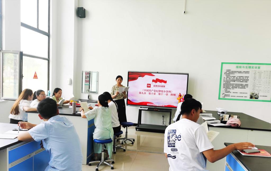 随后,全体党员同志共同研习了《党章》第三章、《中国共产党纪律处分条例》,党员代表肖媛媛同志进行交流发言,进一步提升了党员同志的党性修养,增强了党员的廉洁自律意识。