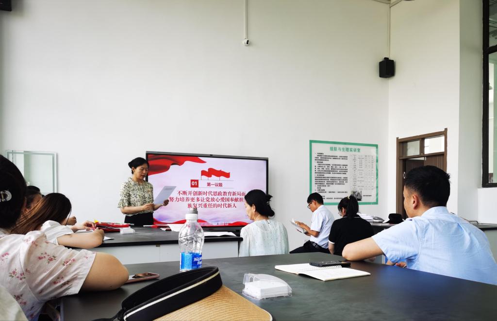 活动伊始,党支部书记领学了习近平对学校思政课程做出的重要指示内容。党支部宣传委员组织大家对《教育部等八部门印发<新时代基础教育强师计划>的通知》的相关理论内容进行了学习,经过学习,教师们更深刻地理解了思政教育的重要性,进而增强了教师落实立德树人这一根本任务的责任感和使命感。