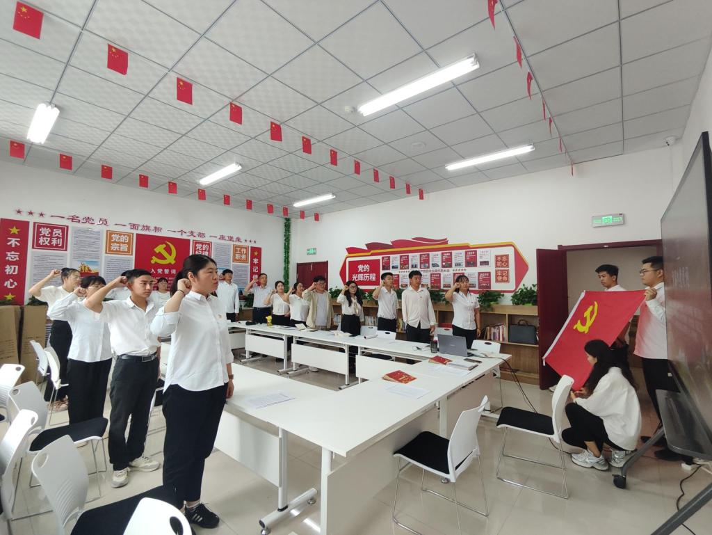 随后,支部委员领学《中国共产党章程》第六章:党的干部;《中国共产党纪律处分条例》第五章、第六章,通过理论学习和宣传贯彻党的方针政策,武装头脑,指导实践,不断增强基层党组织的创造力、凝聚力和战斗力。接下来,由思政教学部党支部书记领誓,全体党员面向党旗重温入党誓词,砥砺入党初心,通过铿锵有力的誓言表达对党的无限忠诚和为共产主义奋斗终身的坚定决心。