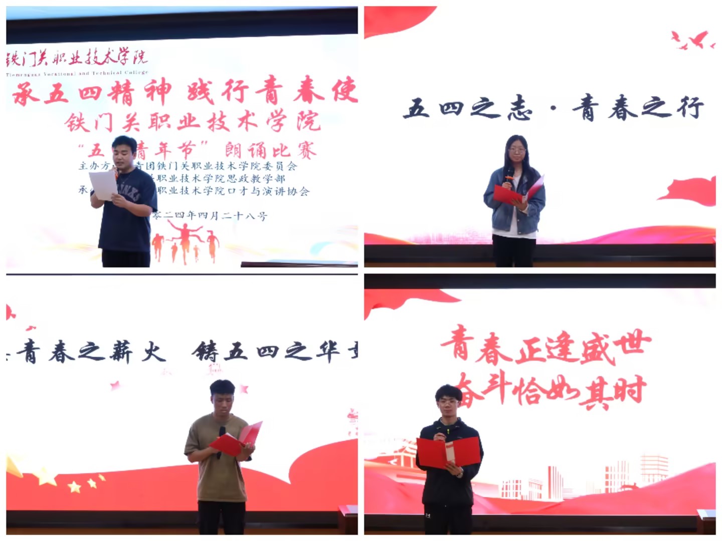 为纪念“五四”运动105周年,厚植大学生爱国主义情怀,展现新时代青年的蓬勃朝气和多彩的校园文化生活,4月28日,beat365官方网站“传承五四精神 践行青春使命”主题朗诵比赛决赛在燕赵楼121阶梯教室举办,此次比赛由学院团委、思政教学部主办,基础教学部和口才与演讲协会(社团)承办。