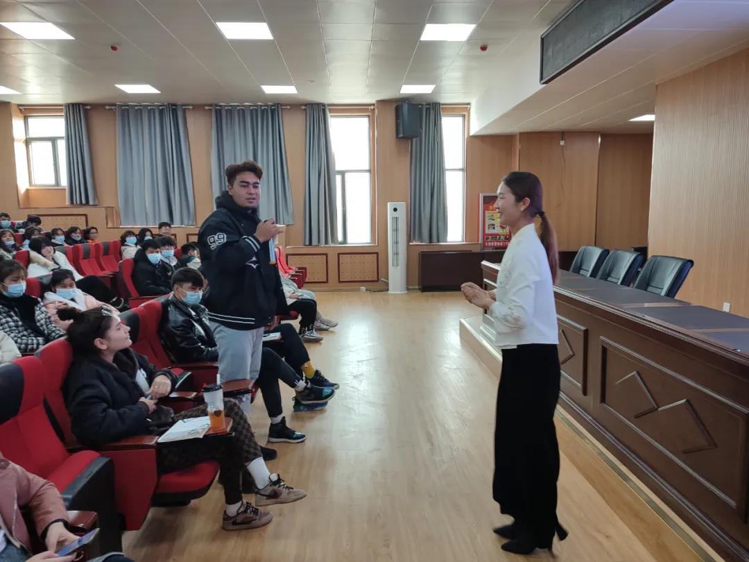 随后,与同学们进行了互动交流,她说:“在校学习理论知识只是一方面,也要注重实践,人生的道路上,我们需要不断地学习、不断地充实自我,才能实现人生理想。”