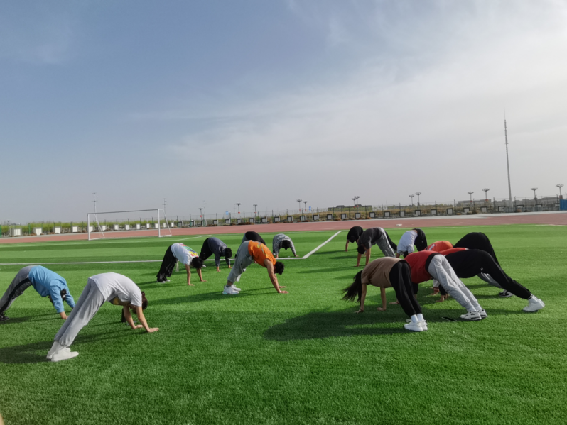 “生命在于运动”。学院操场上,信息工程系21级计算机网络技术1班同学在体育老师的带领下,一起做拉伸锻炼,同学们学习热情高涨。