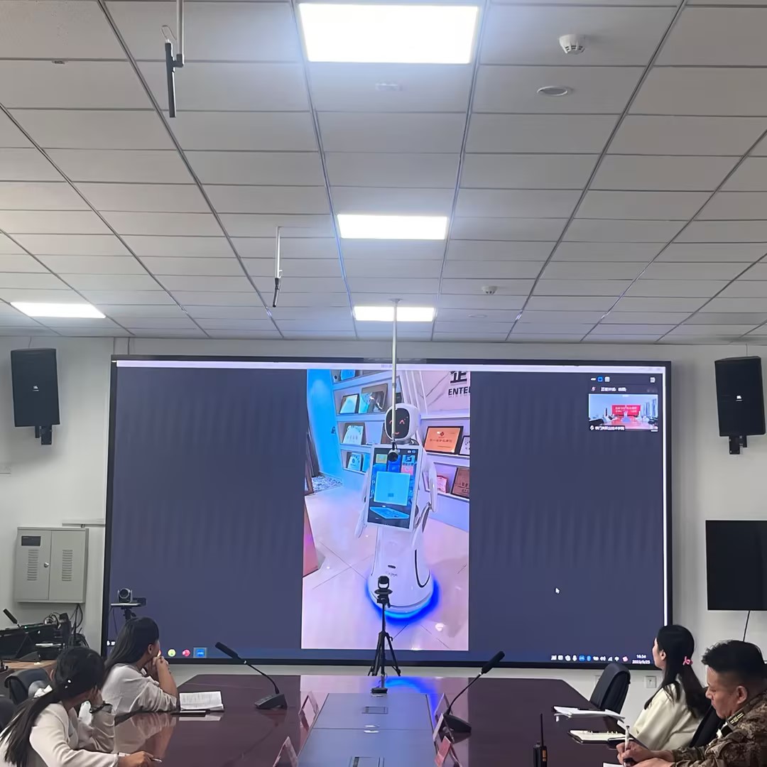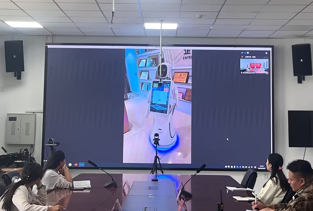 会上,国顺智能科技有限公司总监韩建国从实训基地、实训管理、实训设计图、办学特色、案例分析等方面进行了介绍,对展厅、教学教材及机器人模块等作了讲解。
