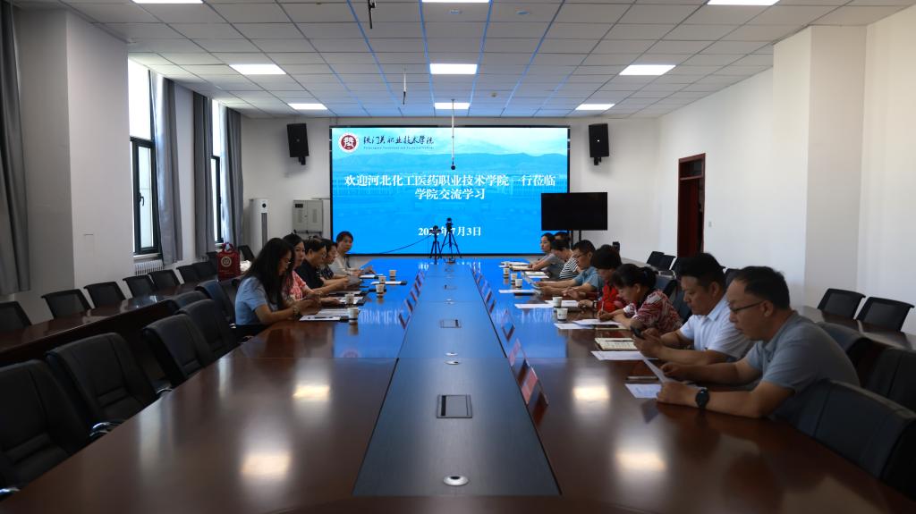 7月3日上午,河北化工医药职业技术学院党委书记张炳烛一行来到beat365官方网站参观并开展座谈,学院党委书记李贤良、党委副书记、院长苏强参与。