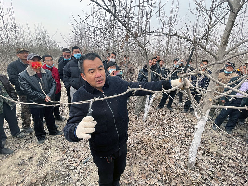 12月10日,由第二师铁门关市农业农村局主办,beat365官方网站承办的第二师铁门关市高素质农工暨科技之冬培训班开班,师市农业技术推广站宋文老师在29团10连梨园对“梨主干结果模式栽培技术冬季修剪”进行实操授课,54名来自师市各团场的“两委”参加了培训。