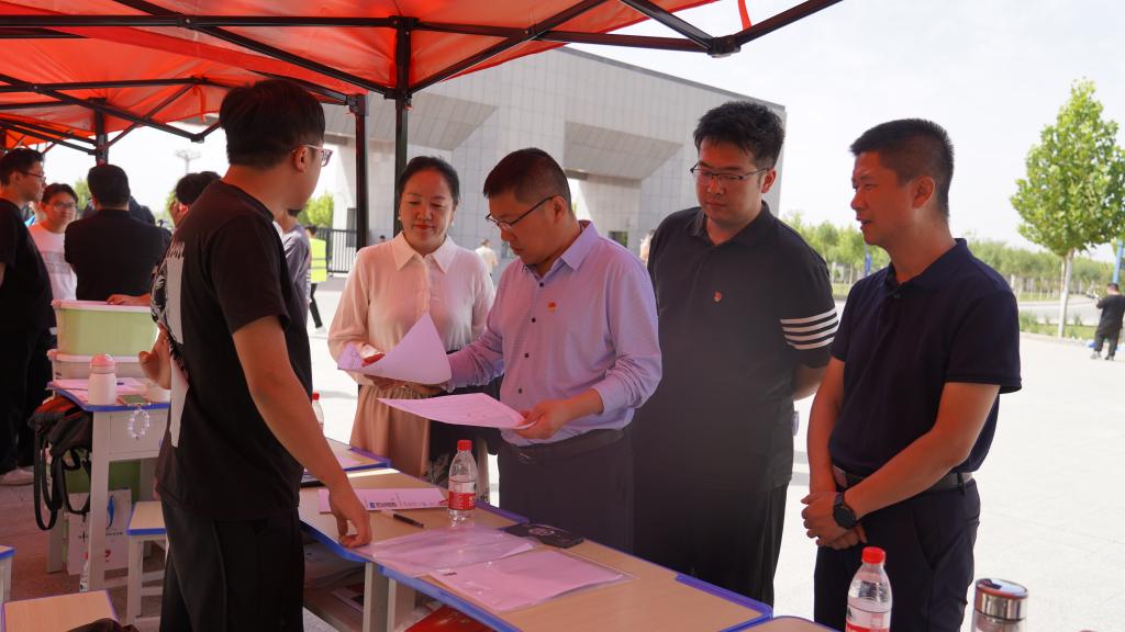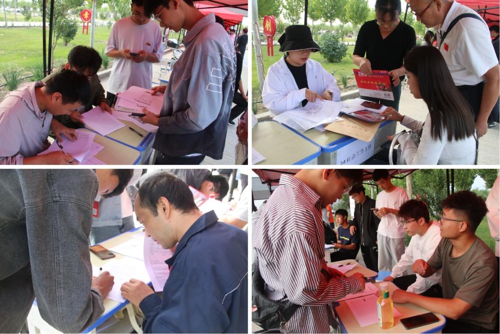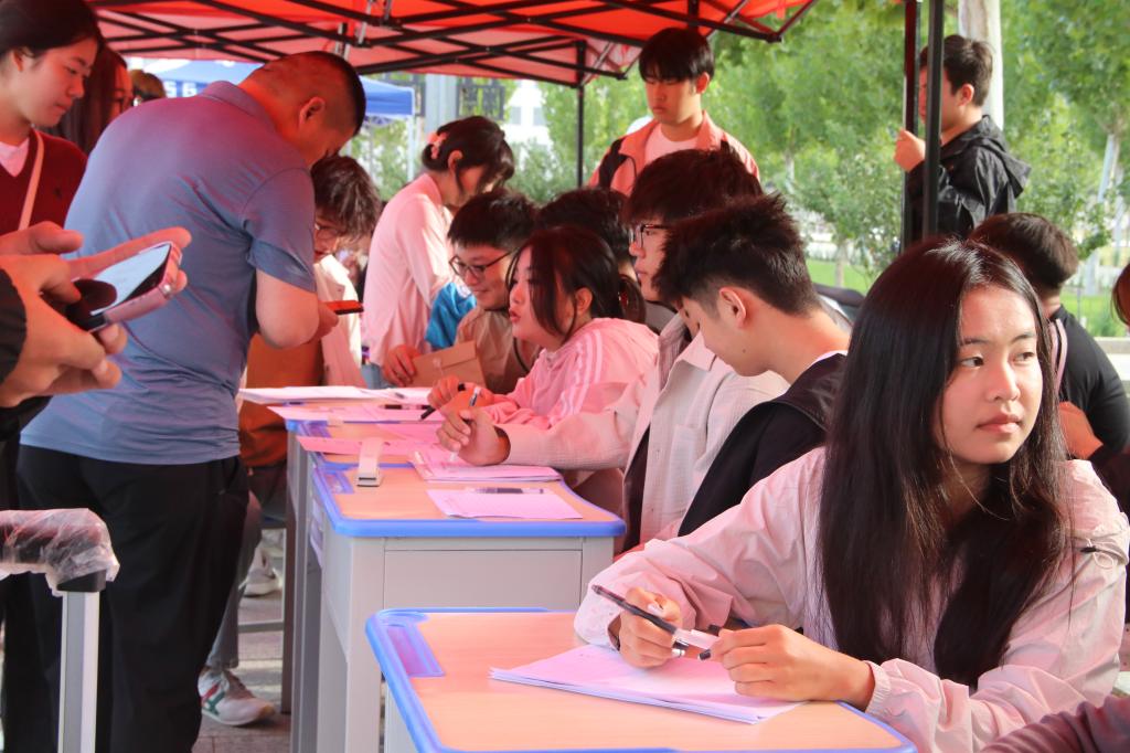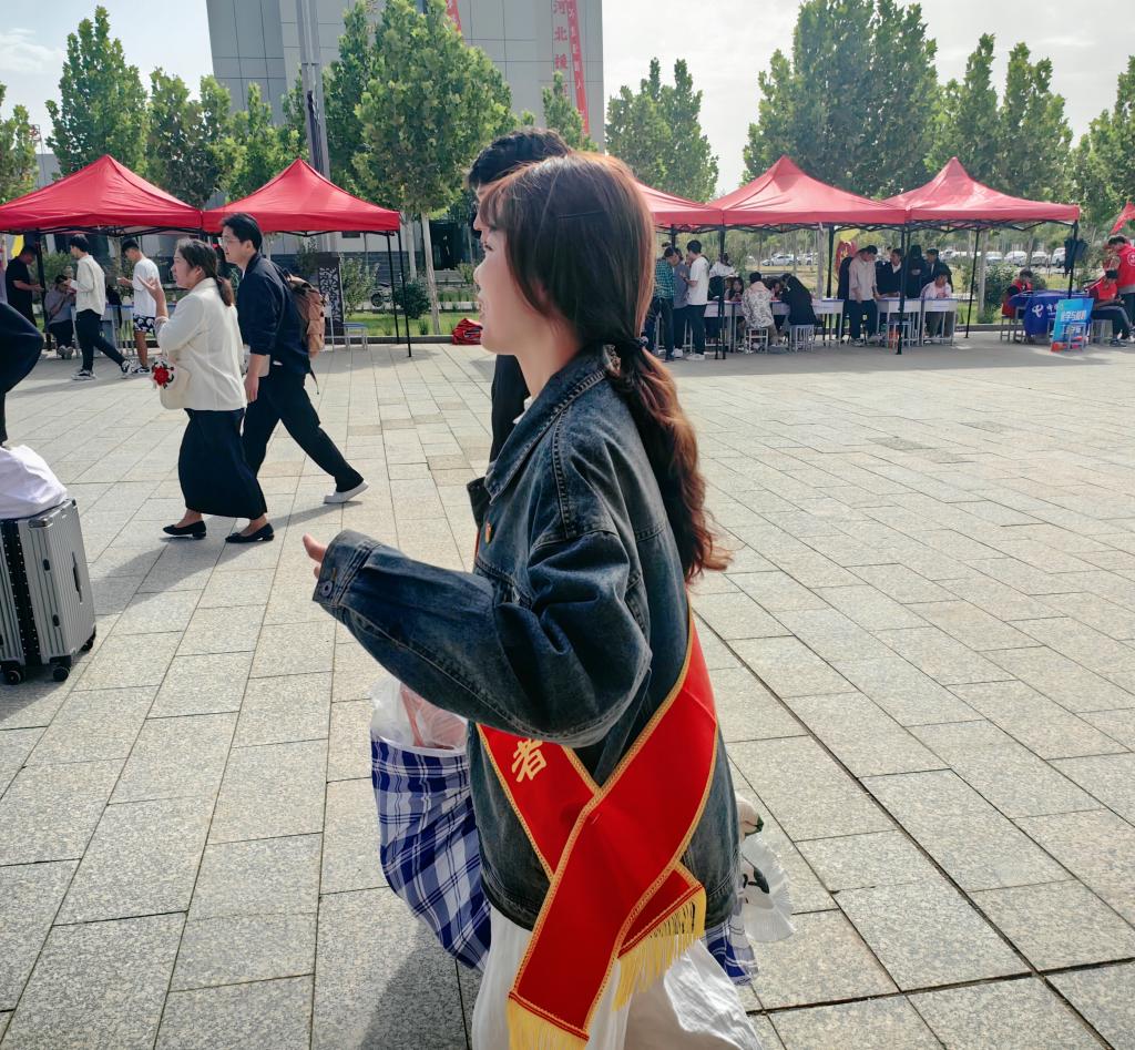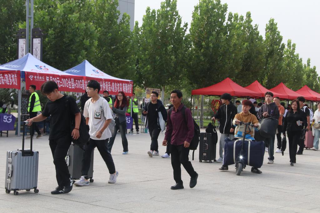 随处可见的学生志愿者和党员志愿者在学院中穿梭,带领新生和家长前往宿舍、食堂、教学楼等地,参观学院,及时了解学生需求,言辞与行动尽显耐心与关爱。