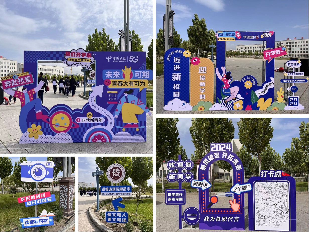 学院迎新点各种展板,多个打卡留影拍照点,营造了“家”的氛围,让新生和家长倍感亲切。