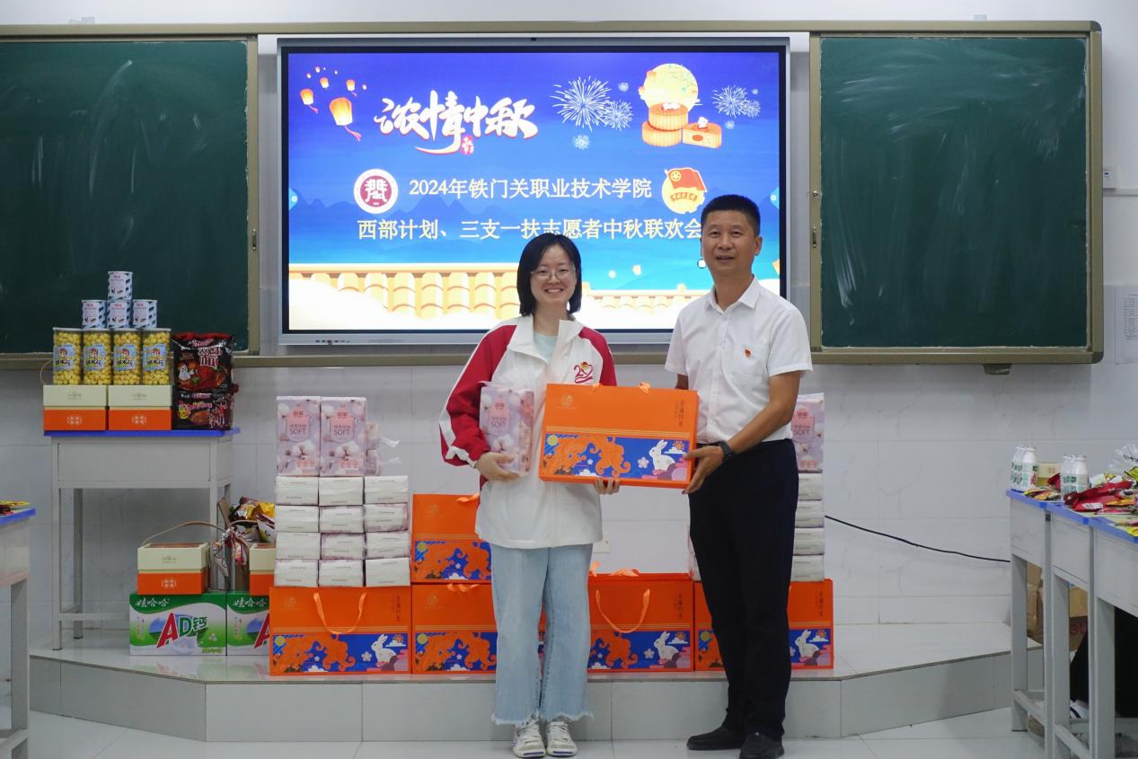 9月14日,在中秋节来临之际,beat365官方网站在燕赵楼举办主题为“情暖中秋 爱在铁职”的大学生西部计划志愿者与三支一扶志愿者中秋联欢会,学院党委副书记、院长苏强及35名大学生西部计划志愿者与“三支一扶”志愿者参加。