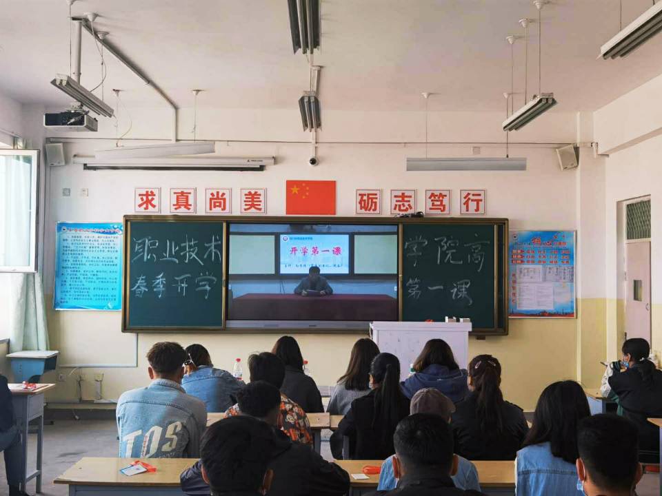 新学期新气象。各系部积极响应学院号召,在做好疫情防控工作的同时,组织学生开展“开学第一课”。伴随着雄壮的国歌,开学第一课正式开始。班主任组织全班学生收看了由学院党委副书记、院长孙苏维主讲的《知止有为齐奋进 立心立命继绝学 争做优秀的社会主义建设者和接班人》主题讲座,针对新学期,他向同学们提出四点要求:一是树牢理想信念,励志忠心报国;二是做好疫情防控,树牢安全意识;三是增进民族团结,共创和谐氛围;四是力行勤俭节约,传承传统美德。随后班主任对学生进行了疫情防控知识的培训,引导学生们做好个人防护,并针对新学期的学习生活对学生提出新要求。