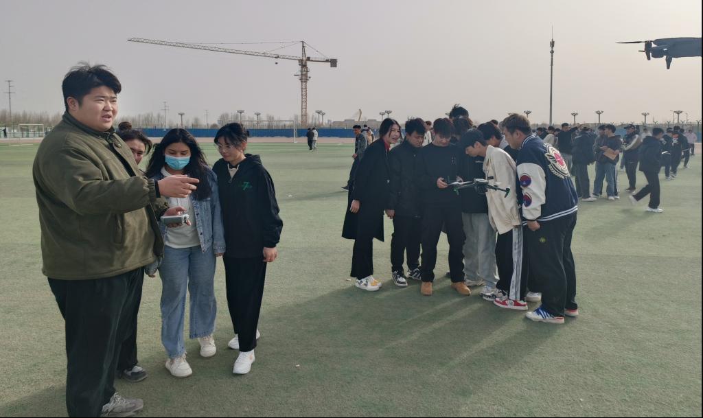 活动开始,指导老师先向同学们细心地讲解了无人机各个零部件的工作原理以及基本的使用常识和操作流程,随后参训人员在老师的指导下轮流进行无人机实际操作练习,完成调试、起飞、上升、俯仰、拍摄、返程等常用基本动作。活动中,大家热情高涨,专心致志,生怕错过每一项操作。