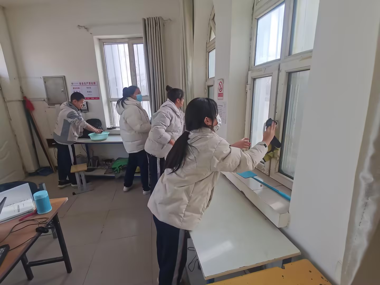 活动伊始,由党员教师对学生提出要求,希望学生以“立志欲坚不欲锐,成功在久不在速”的服务精神认真对待志愿活动。活动中,团员们互帮互助,互相督促,同心协力,对校门口的电动车进行擦洗并摆放整齐,帮助附近便民警务站打扫门前落叶、擦拭其玻璃,主动将学院值班室清理的干干净净。活动结束后,团员们得到了警务站同志的肯定和表扬。