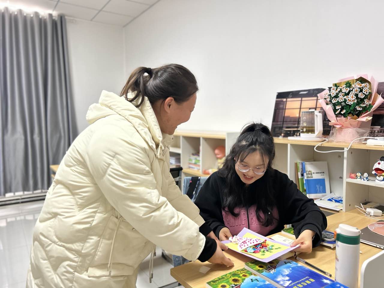该系学生充分发挥想象力和创造力,用美术技能课上所学的知识,利用课余时间将彩纸通过折叠、裁剪、粘贴等步骤,制作成花朵和枝干的形状,一张张彩纸在她们手中摇身一变为一束束栩栩如生的花朵。