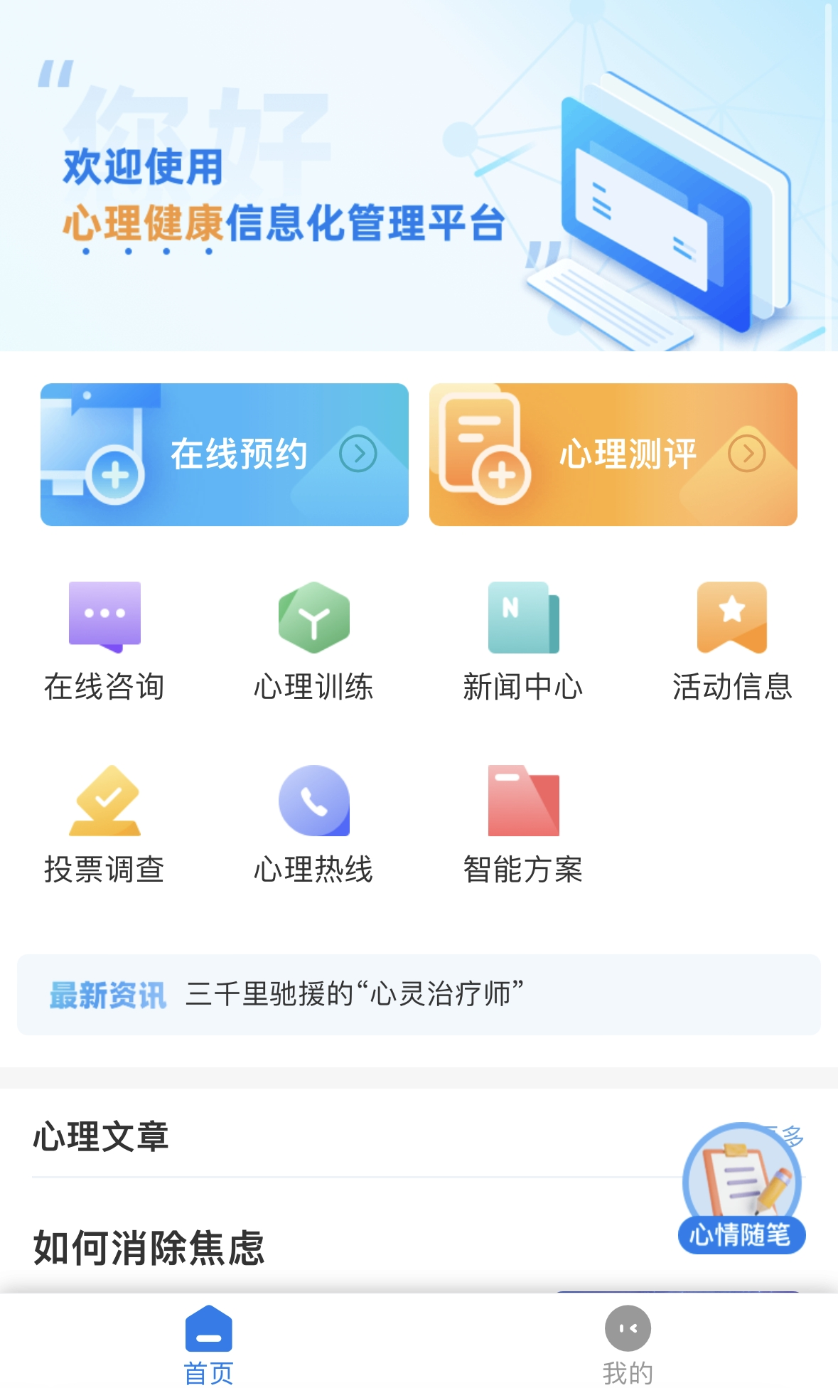 心理健康信息化管理平台集合了心理咨询预约、心理测评、心理知识普及等多项功能,通过该平台,学生可轻松完成心理咨询预约和心理测评的全部流程,有效解决了线下预约可能出现的排队等待、信息填写繁琐、测评进展缓慢等问题,大大提高了心理健康服务的便捷性和效率。