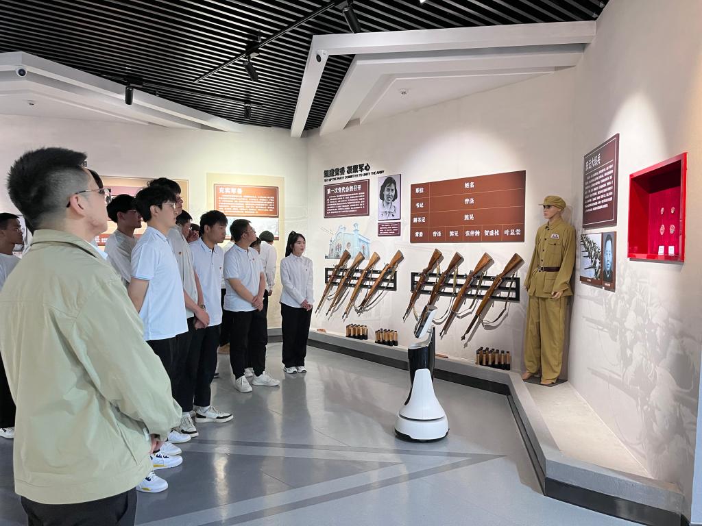 宣誓结束后,师生随同讲解机器人,整齐列队,缓缓从一个篇章走向另外一个篇章。纪念馆通过文物陈列、场景还原等形式,采用声光电等技术手段,机器人讲解着各位烈士的英雄事迹,让同学们感悟革命先烈的初心和使命。生动再现了新疆生产建设兵团几代人屯垦戍边的艰苦历史。他们肃立在革命先烈姓名墙前,向为国家和人民英勇献身的英雄致以深切的怀念和崇高的敬意。