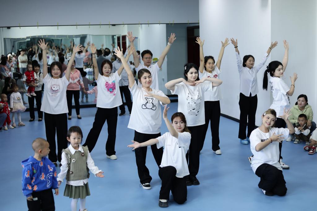 活动开始,教育艺术系负责人代表学院欢迎各位家庭的到来。接着,该系部22、23级学前教育专业学生带来了开场舞《勇气大爆发》,活动气氛逐渐热烈起来。欢迎仪式结束后,该系部10名学生引导小朋友们和家长们围坐成一圈,通过律动操《棒棒糖》进行热身活动,大家在欢快的音乐和轻松、愉快的氛围中,体验了亲子律动所带来的快乐。