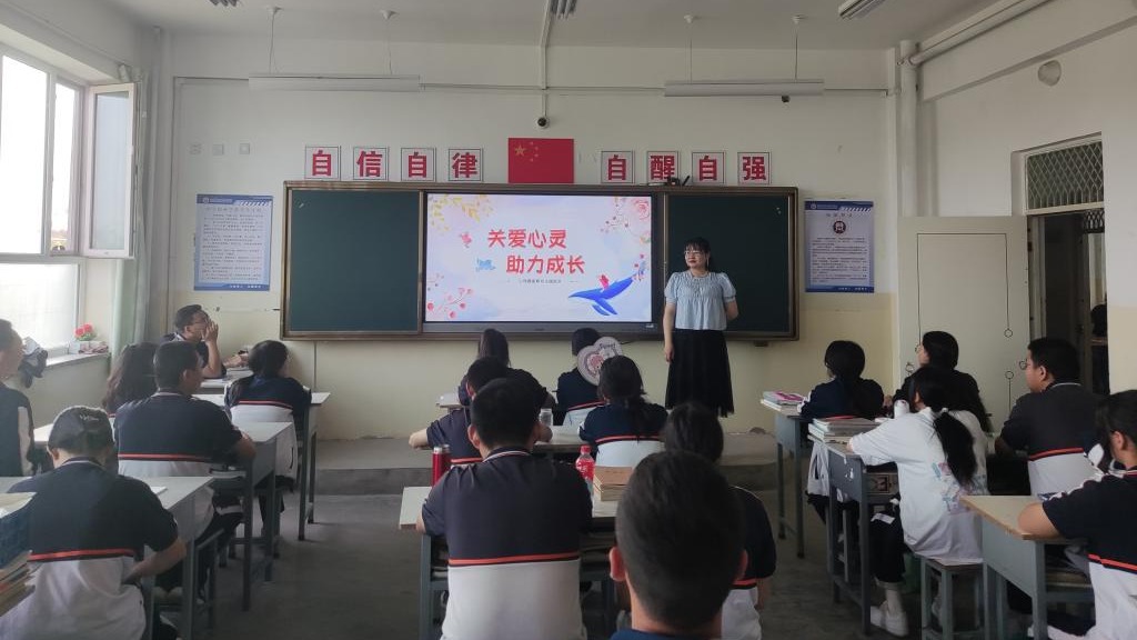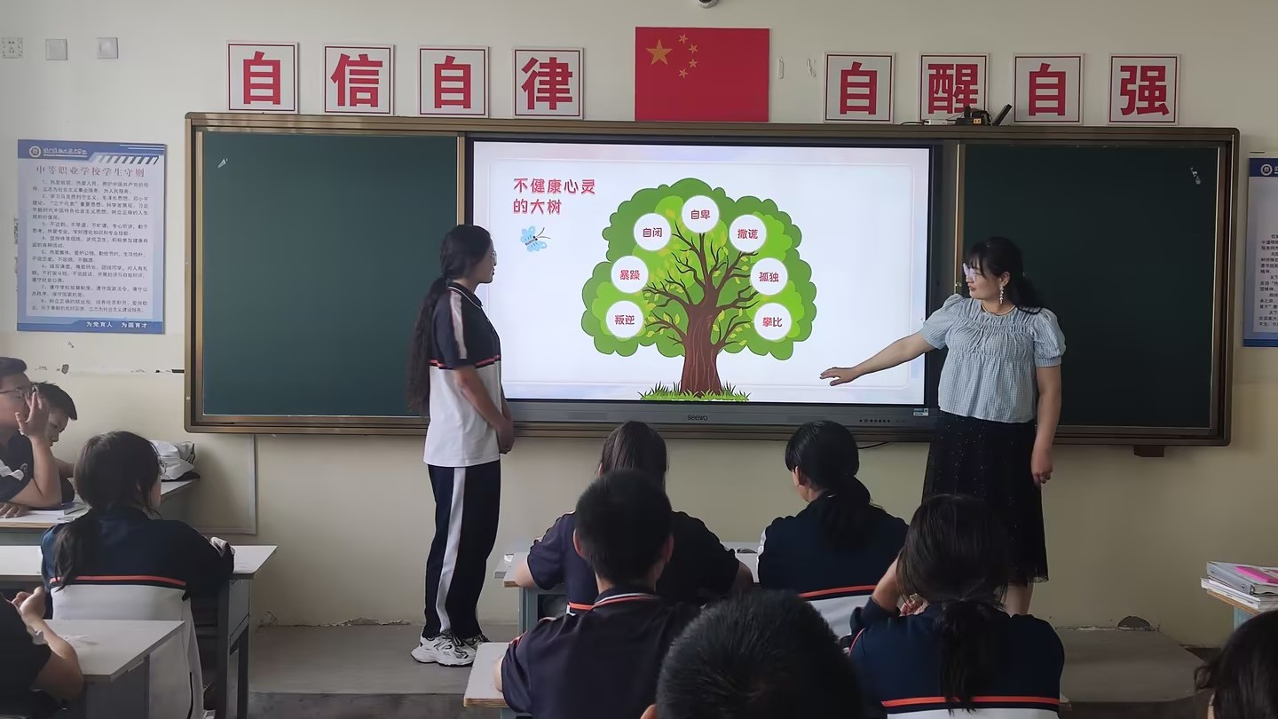 在观影环节,老师通过心理健康微电影《绽放》,让学生了解黑天使即负面情绪和白天使即正面情绪对一个人的影响,从而让学生保持阳光心态。