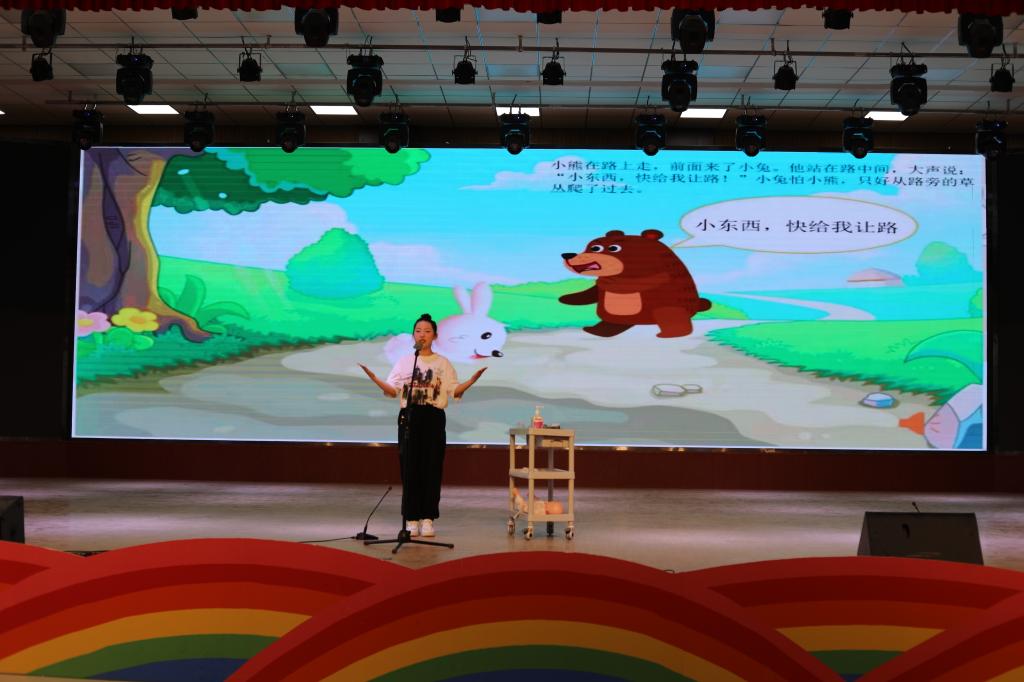 活动现场分为大赛项目展示和技能展示两个模块,首先由2024一带一路暨金砖国家技能发展与技术创新大赛第二届幼儿照护职业技能赛项的中职参赛选手们,展示婴幼儿回应性照护技能考核赛项。其中,吴芷镜和宋欣瑜两位同学先后展示了故事讲述《小熊让路》和幼儿体温测量项目。