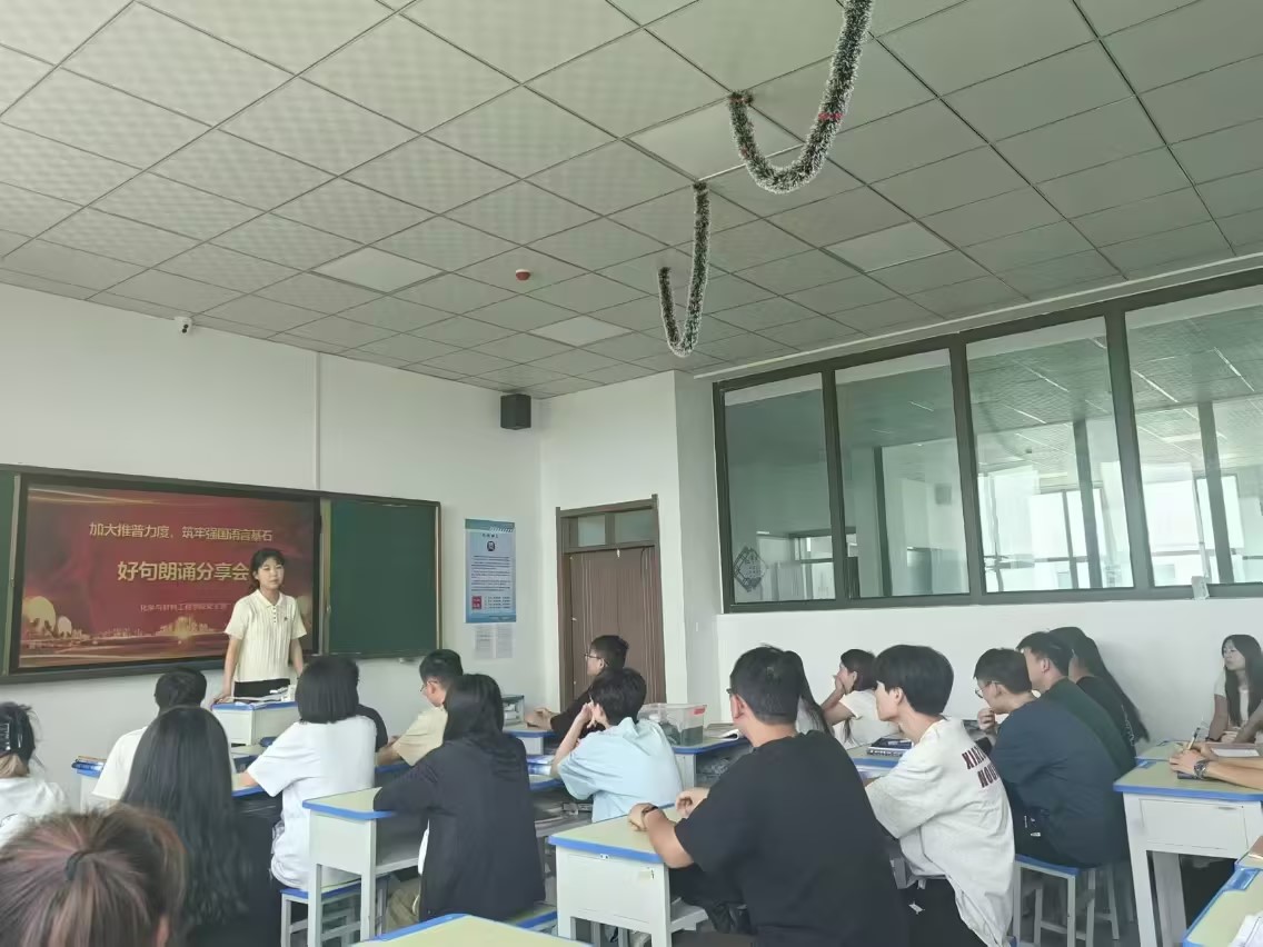 9月10日,在第27届全国推广普通话宣传周来临之际,beat365官方网站化学与材料工程学院党支部为提升师生的语言能力和文化素质,营造良好的语言环境,组织开展了“好句朗诵分享会”主题活动。党支部党员教师和30余名学生参与。