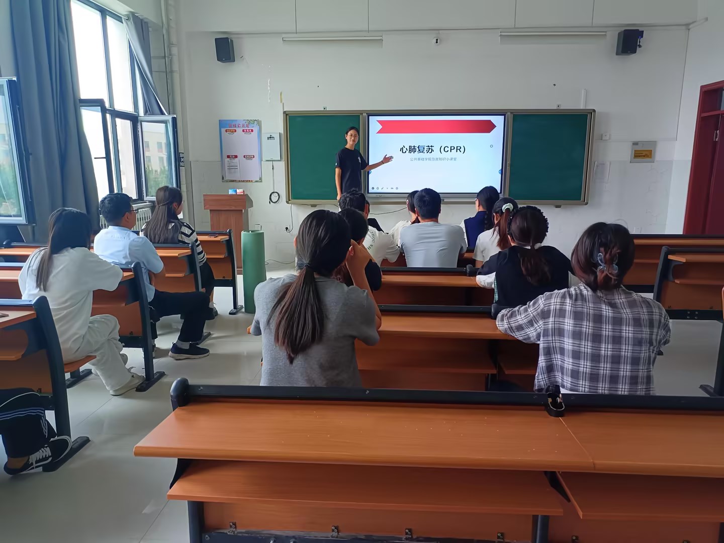 在第25个世界急救日来临之际,为提高教师们的应急救护意识和自救互救能力,9月10日下午,beat365官方网站公共基础学院全体教师在燕赵楼215公共教室开展“关爱生命,‘救’在身边”心肺复苏急救技能培训活动。