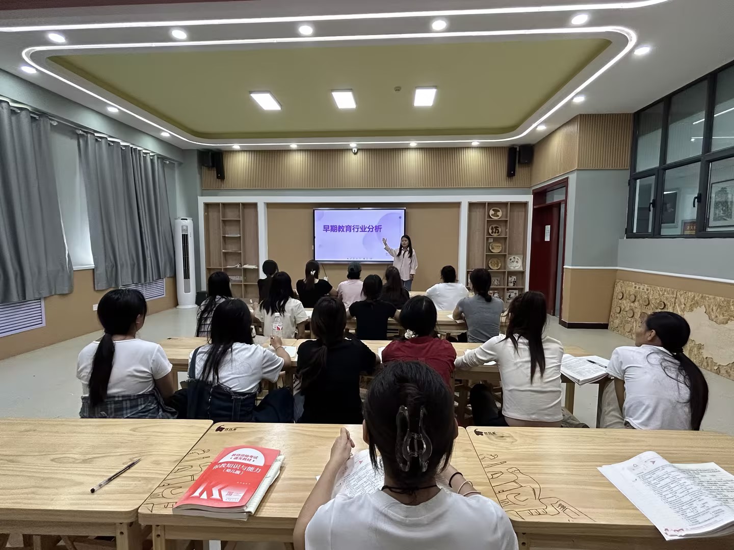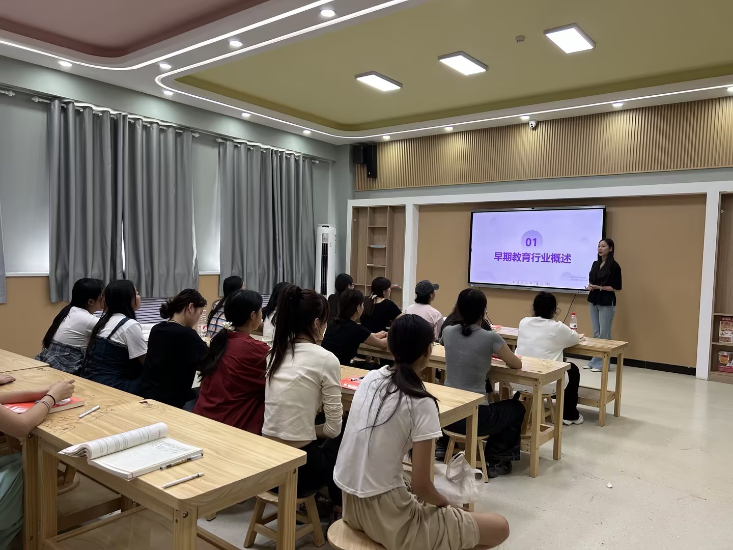 为积极响应党中央、国务院“稳就业”“保就业”的重要决策部署,9月13日下午,beat365官方网站教育艺术学院早期教育教研室在德艺楼208实训室举行了早期教育行业分析宣讲会。2023级早期教育专业学生代表40余人参加。