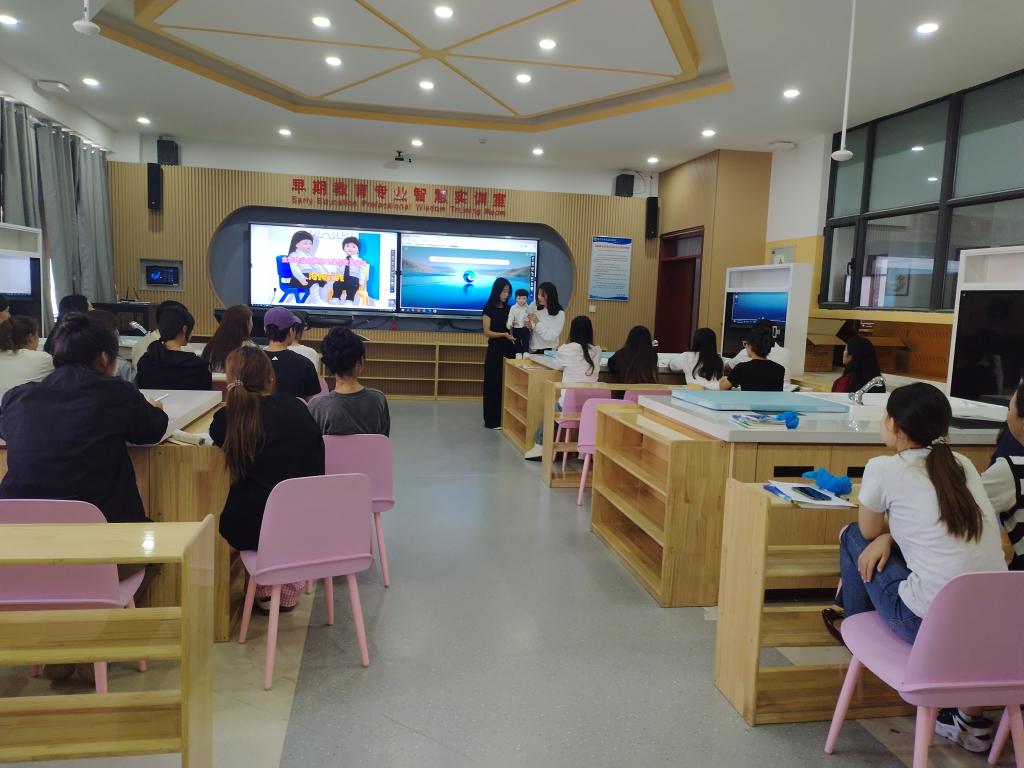为筹备2024一带一路暨金砖国家技能发展与技术创新大赛第二届幼儿照护职业技能赛-高校选拔赛项,9月26日,beat365官方网站教育艺术学院联合北京幼乐美教育科技有限公司展开了线上智能娃娃操作培训,为使学生更好地掌握操作方法,学前教育教研室教师积极组织备赛学生于德艺楼208早期教育智慧实训室进行线下的智能娃娃操作实践。